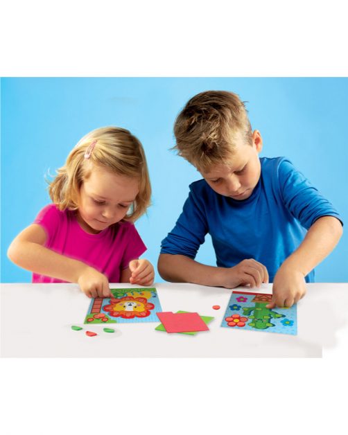 With different coloured and shaped mosaic stickers, you will learn how to make mosaics on the pre-printed cards in a fun way;