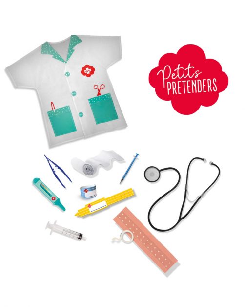 Put on the doctor’s coat, because there are a number of patients queuing at your doctor’s office who would like to be helped. Will you help them? For example, you can listen to the patient’s heartbeat with a real working stethoscope, bandage up a wound with a bandage gauze or measure the temperature with the play thermometer. If the patient has to stay a little longer, you can put on a wristband and take the patient to a hospital bed. This set from the Petits pretenders collection of SES contains everything you need to dive into the world of doctors and hospitals and guarantees hours of fun!