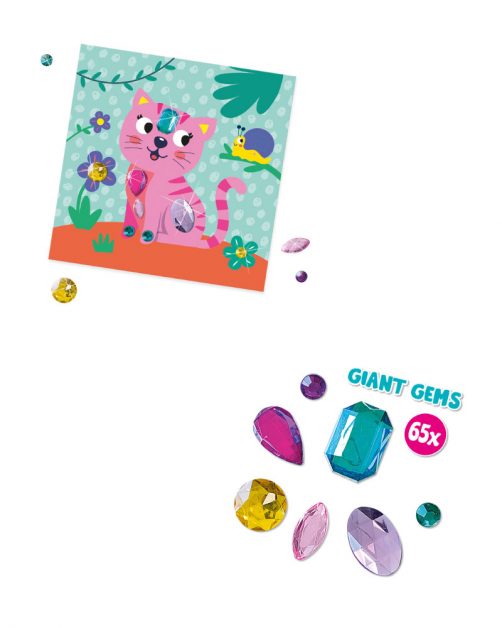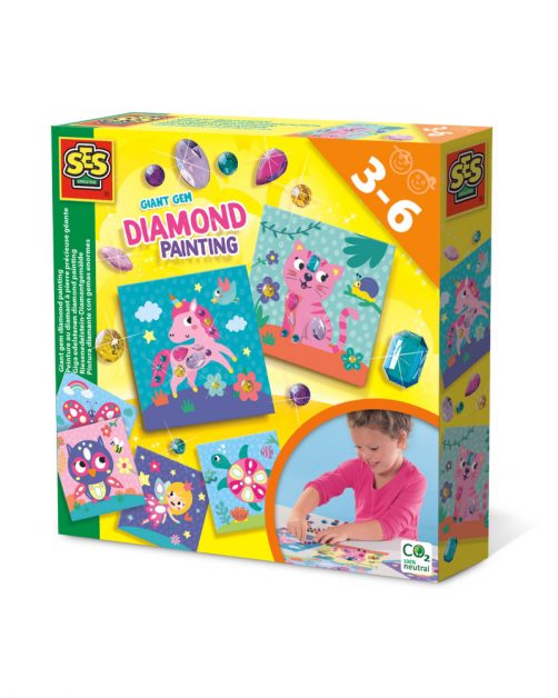 Diamond painting, now for little ones too! With this awesome Giant gem diamond painting set, you can make beautiful diamond paintings. The extra large stones are self-adhesive and can be stuck onto six bright cards. Will you make a dazzling turtle or a magical unicorn first?