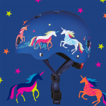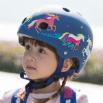 We cannot stress enough the importance of safety. Please choose the size carefully. Measure your child’s head from the forehead, where the helmet will sit, round to the furthest point on the back of the head. – Extra padding for an optimum fit and wearing comfort – Adjustable fastener for a perfect fit