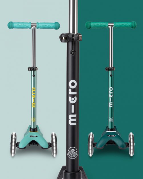 Nothing else changes, we’ve kept Mini Micro Deluxe that preschoolers know and love including the lean to steer system, adjustable T-bar to grow with them. Only now it’s an even more eco-friendly kids toy.
