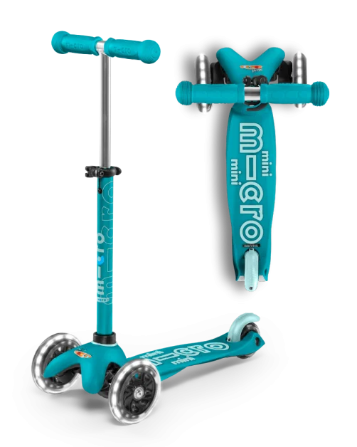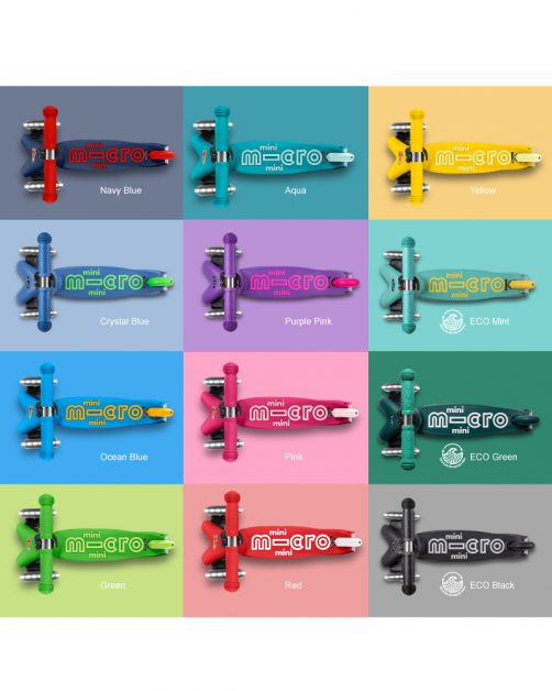 The Mini Micro Deluxe LED is brimming with features that make it shine. Ingenious light-up LED wheels use induction energy to turn the power kids create as they scoot into bright white light. No batteries. No fuss. The adjustable handlebar and increased 35kg weight limit mean mini explorers can now start earlier and keep going longer. The colour pop anodised stem not only stands out from the crowd but survives the toughest of knocks. The Mini Deluxe LED has a footplate made from flexible PAGF (reinforced fibreglass) and a double-injected anti-slip silicone logo to help keep children’s feet firmly planted, even in wet weather. With our innovative braking system that responds to the slightest touch, thermoplastic, toxin-free rubber handle grips that are soft yet strong and polyurethane, puncture-free wheels for endless adventures. The Mini Deluxe LED is the most refined and durable pre-school scooter in town.