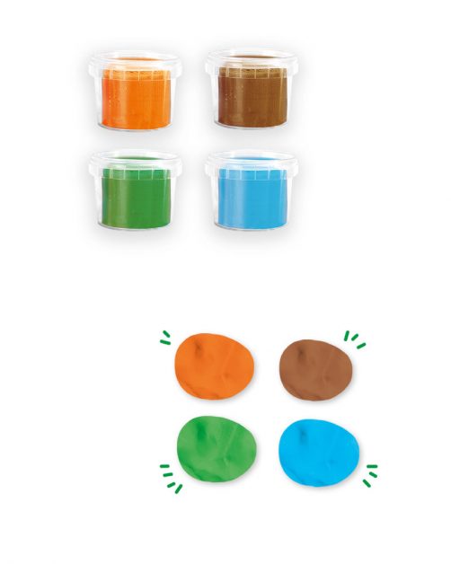 Set bột nặn Happy Dough có màu sắc dễ thương và bắt mắt: xanh lá, xanh dương, cam và nâu.